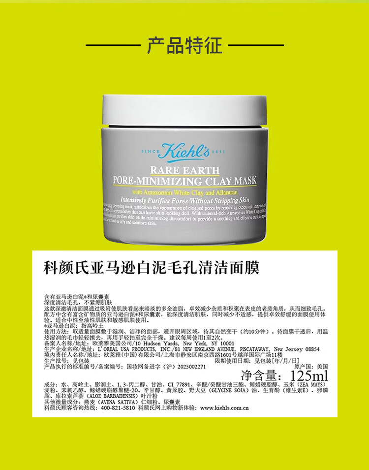 Kiehl’s科顏氏全新第二代白泥清潔面膜125ml
